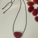 Geometric Agate Pendant Necklace Adjustable Leather Cord Minimalist Jewelry