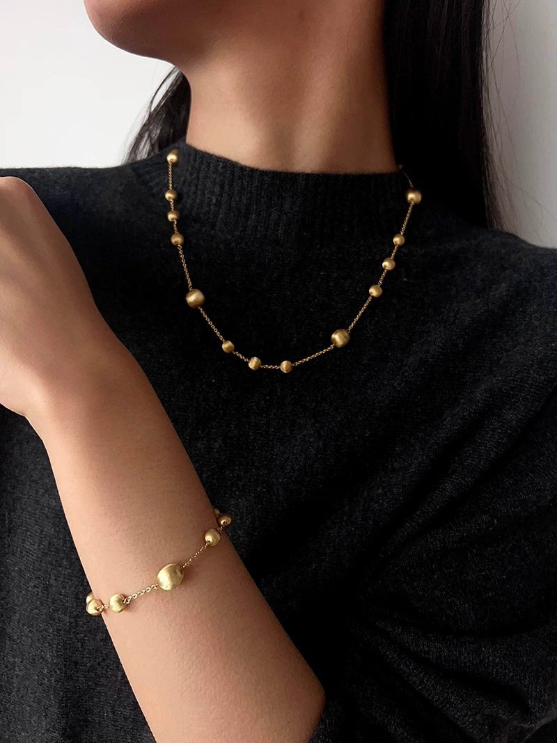 Italian Brushed Gold Ball Necklace - floysun