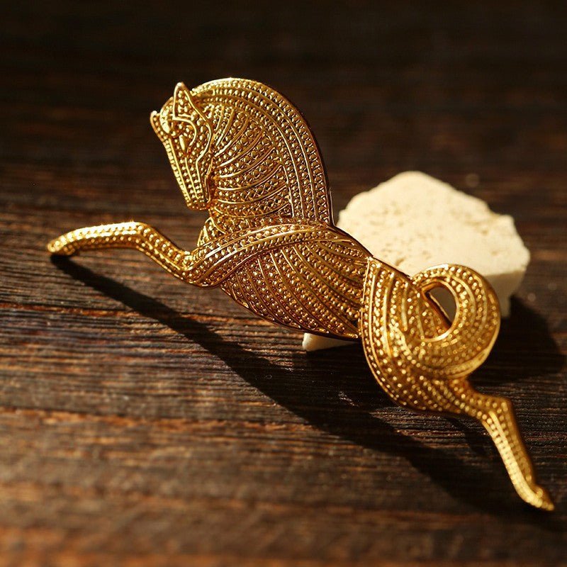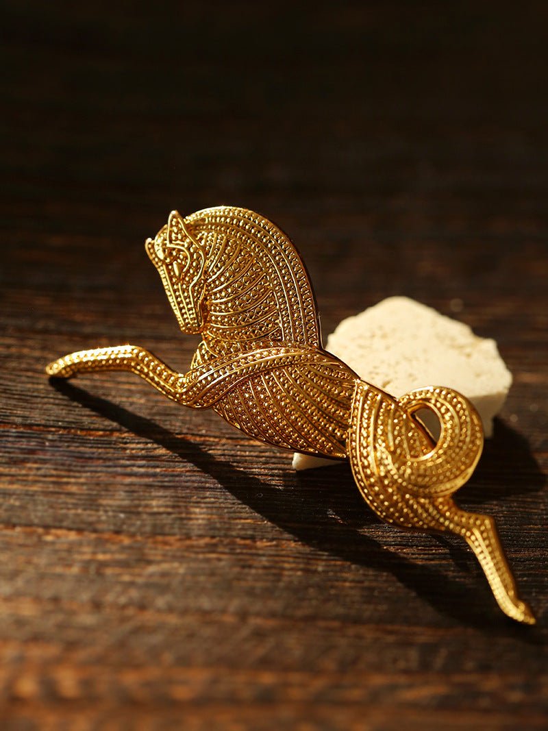 The gold-plated finish enhances its antique character, while the compact size makes it easy to pair with daily outfits. Perfect for styling with blazers, coats, knitwear, or business attire, it adds an artistic touch that instantly elevates your look. Subtle, elegant, and full of personality.