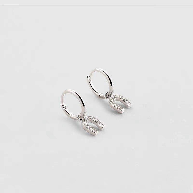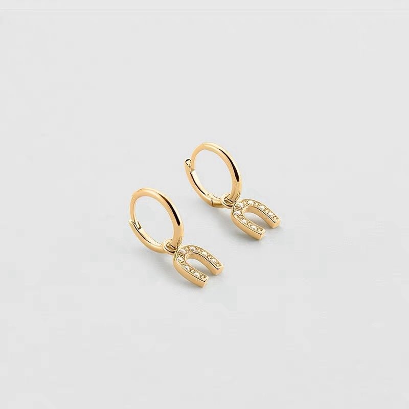 Lucky Horseshoe CZ Huggie Earrings