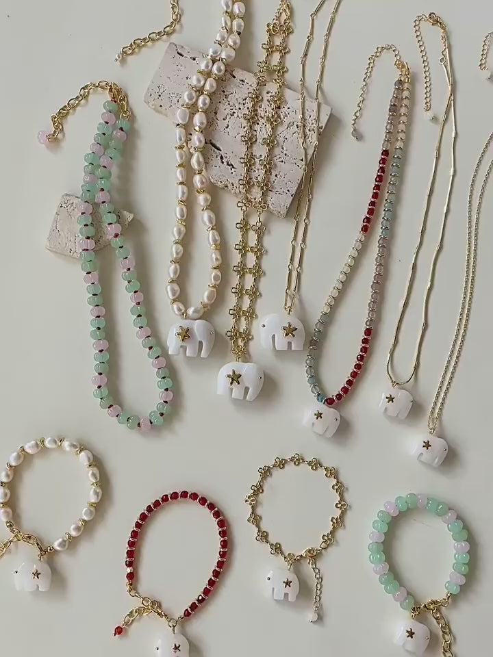 This necklace features a hand-carved white jade elephant pendant — symbolizing wisdom and protection — paired with faceted colorful natural stone beads that shimmer with subtle brilliance.