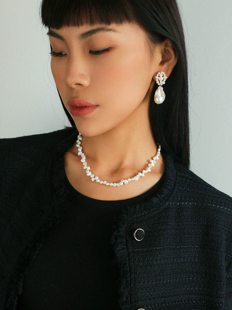 Unleash elegance with our Handwoven Baroque Short Pearl Earrings - a perfect blend of beauty and expert craftsmanship. Adorned with unique baroque pearls, delicately wrapped in sterling silver wire, these earrings are a testament to artisanal finesse. Elevate your style with this versatile and sophisticated accessory, suitable for any occasion.