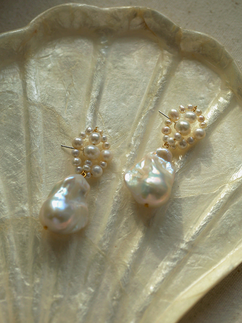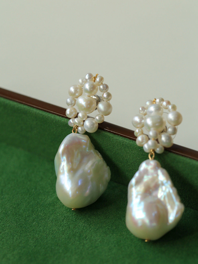 Handwoven Baroque Wrapped Pearl Earrings - floysun