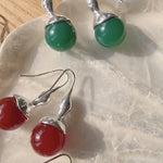 Red Agate Green Agate White Crystal Pearl Ear Hook - floysun