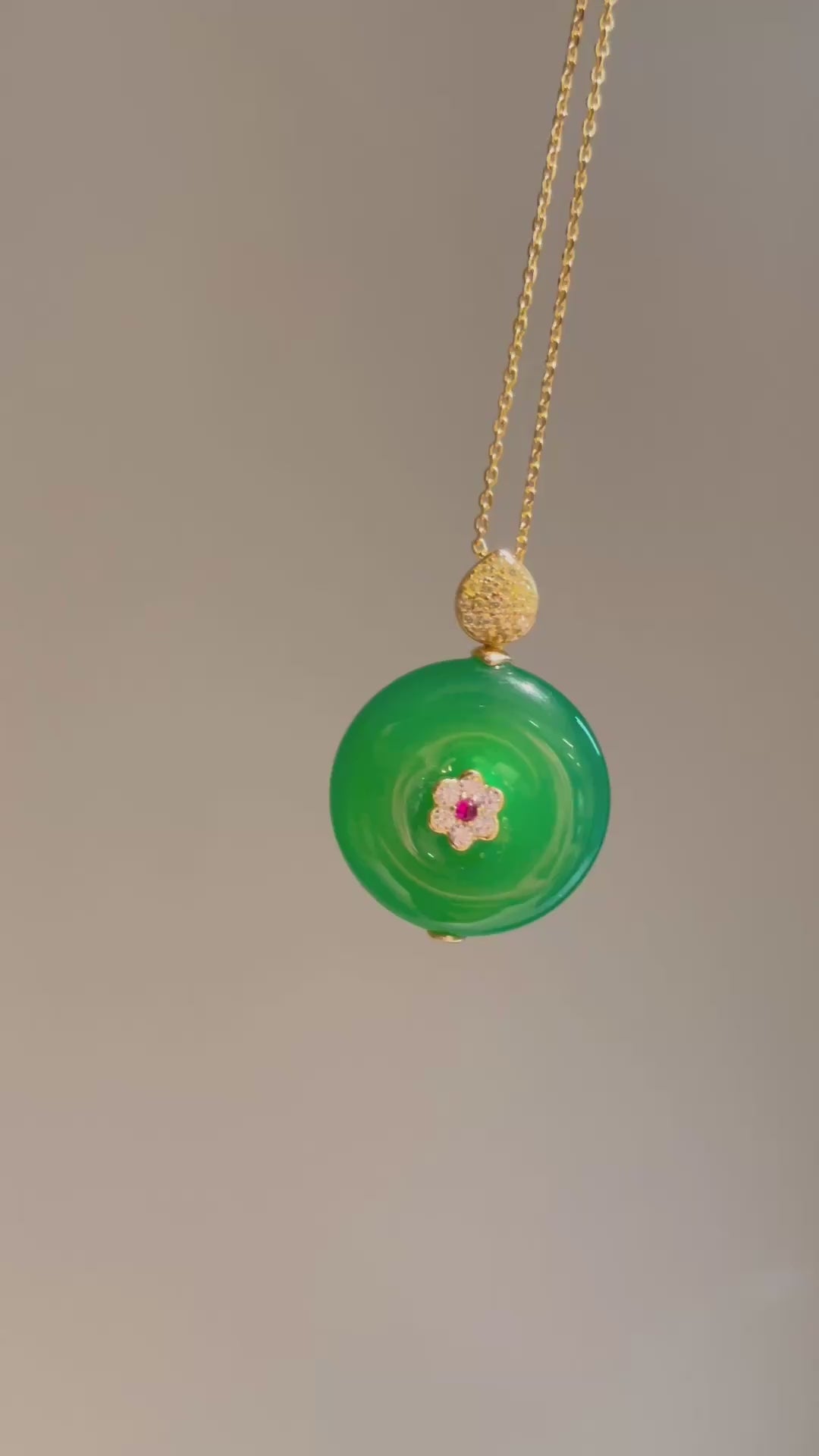 Where modern elegance meets timeless tradition — the Emerald Harmony Jade Chalcedony Pendant Necklace reimagines the classic peace amulet in a youthful, contemporary way. Crafted from natural green chalcedony with exceptional translucence and vibrant “Zhengyang” hue, each piece glows with serenity and depth.