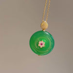 Emerald Harmony Jade Chalcedony Double - Sided Filigree Pendant Necklace - floysun