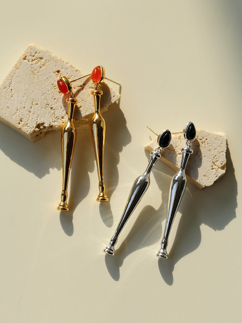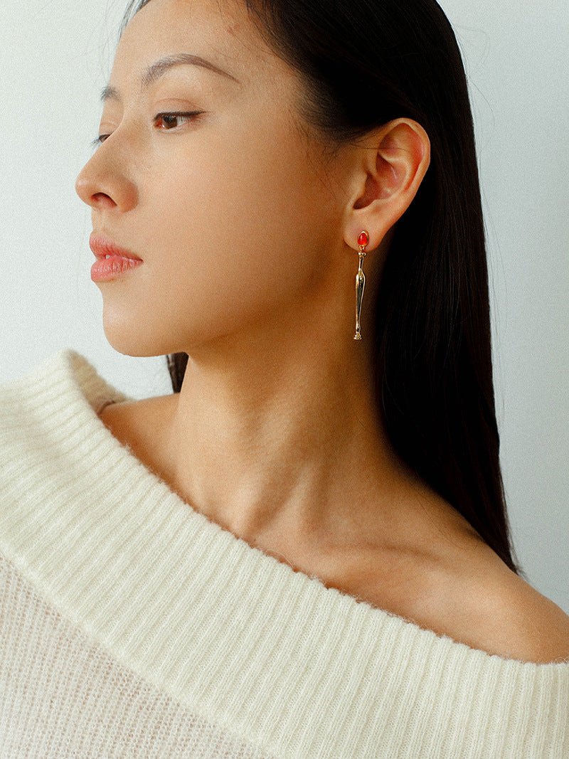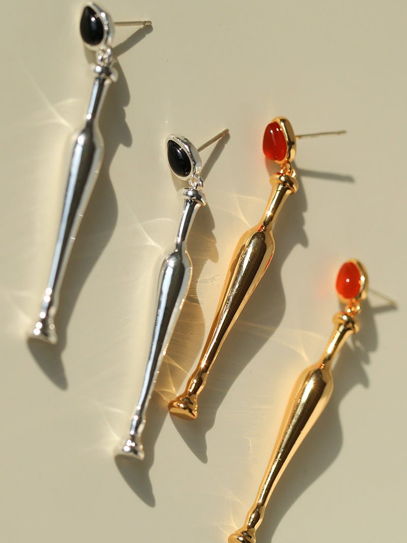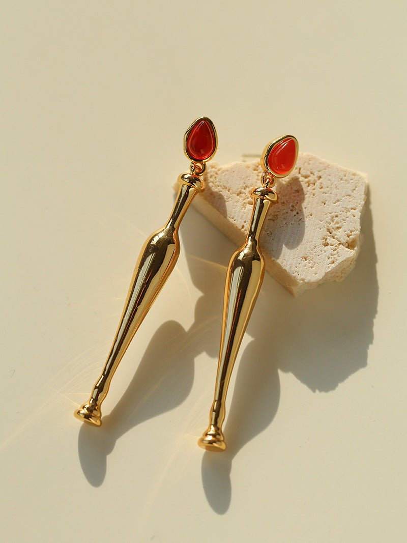 Inspired by the sculptural elegance of a slender vase, these bottle-shaped earrings feature a refined silhouette with clean, flowing lines.The elongated design visually enhances the face shape, while the inlaid red agate adds a soft yet luxurious touch with its warm, natural glow.