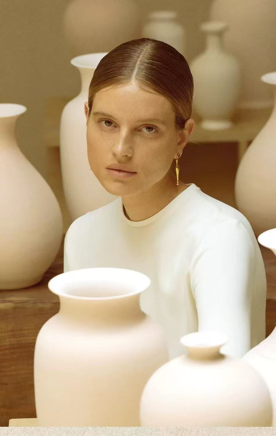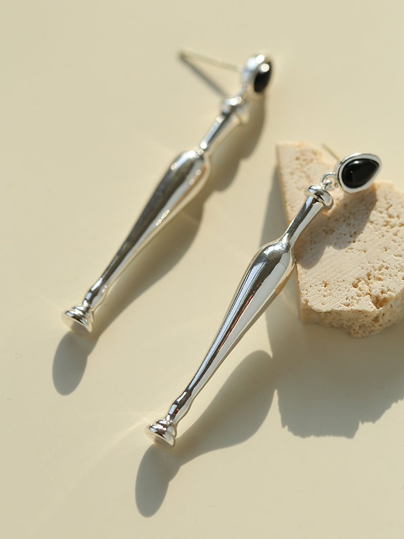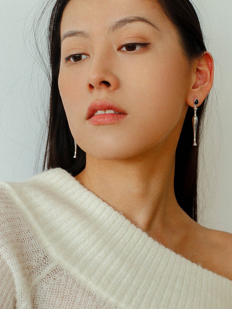 Inspired by the sculptural elegance of a slender vase, these bottle-shaped earrings feature a refined silhouette with clean, flowing lines.The elongated design visually enhances the face shape, while the inlaid red agate adds a soft yet luxurious touch with its warm, natural glow.