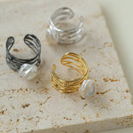 Baroque Freshwater Pearl Multi-Layer Ring - Gold
