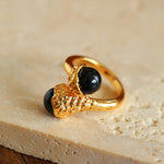 Gilded Bud Black Onyx Statement Ring