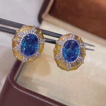 Brushed Blue Sapphire Hexa - Star Earrings - floysun