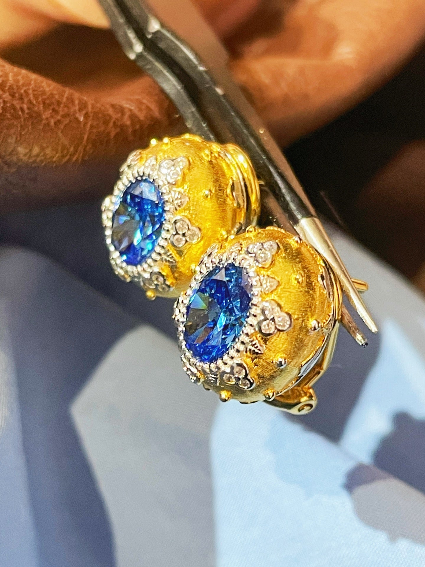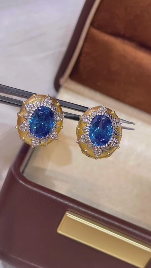 Brushed Blue Sapphire Hexa-Star Earrings