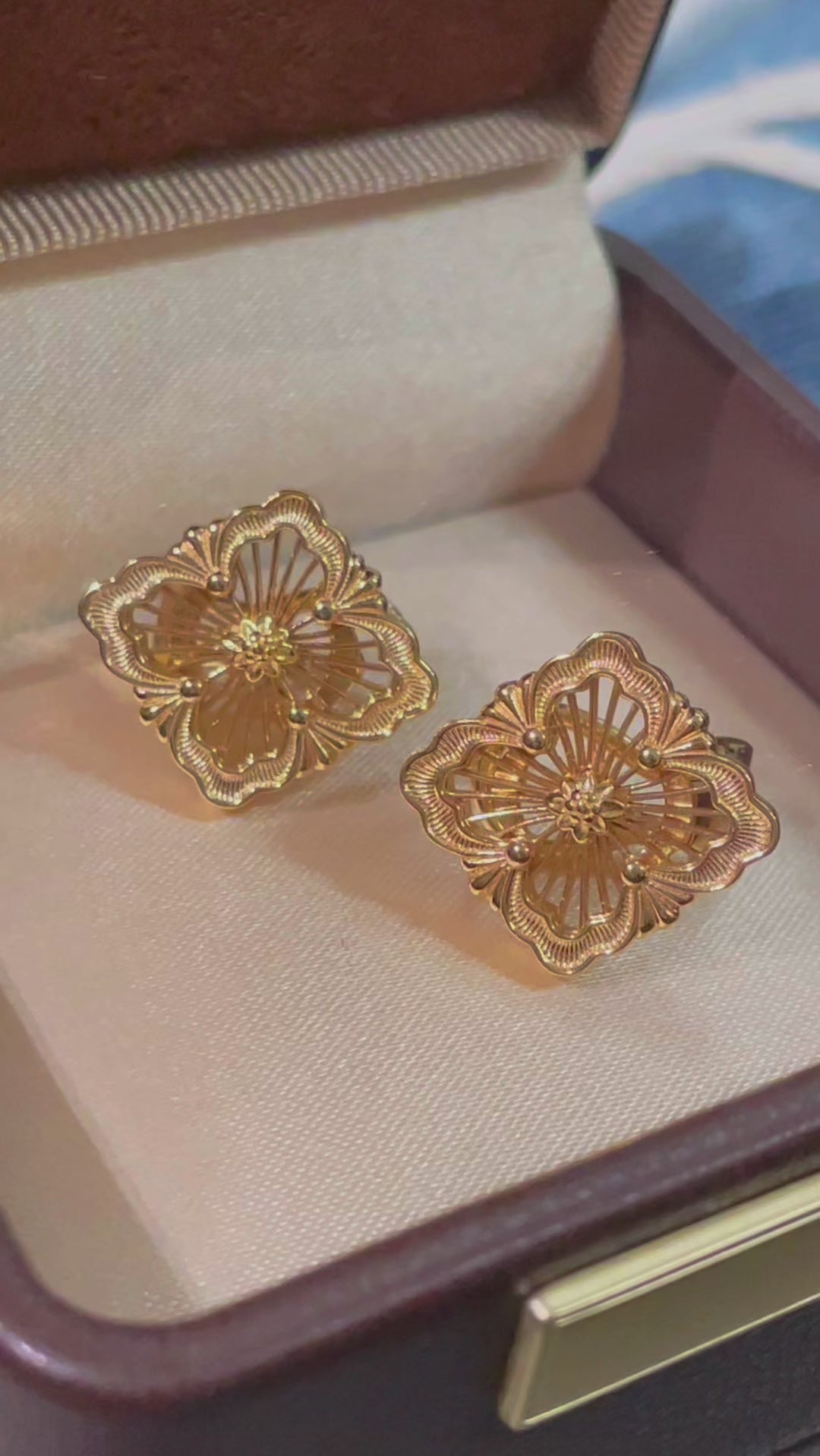 Buccellati-Inspired Honeycomb Clover Stud Earrings