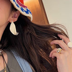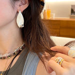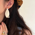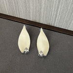 White Enamel Scroll Leaf Statement Earrings Upgraded Version - floysun