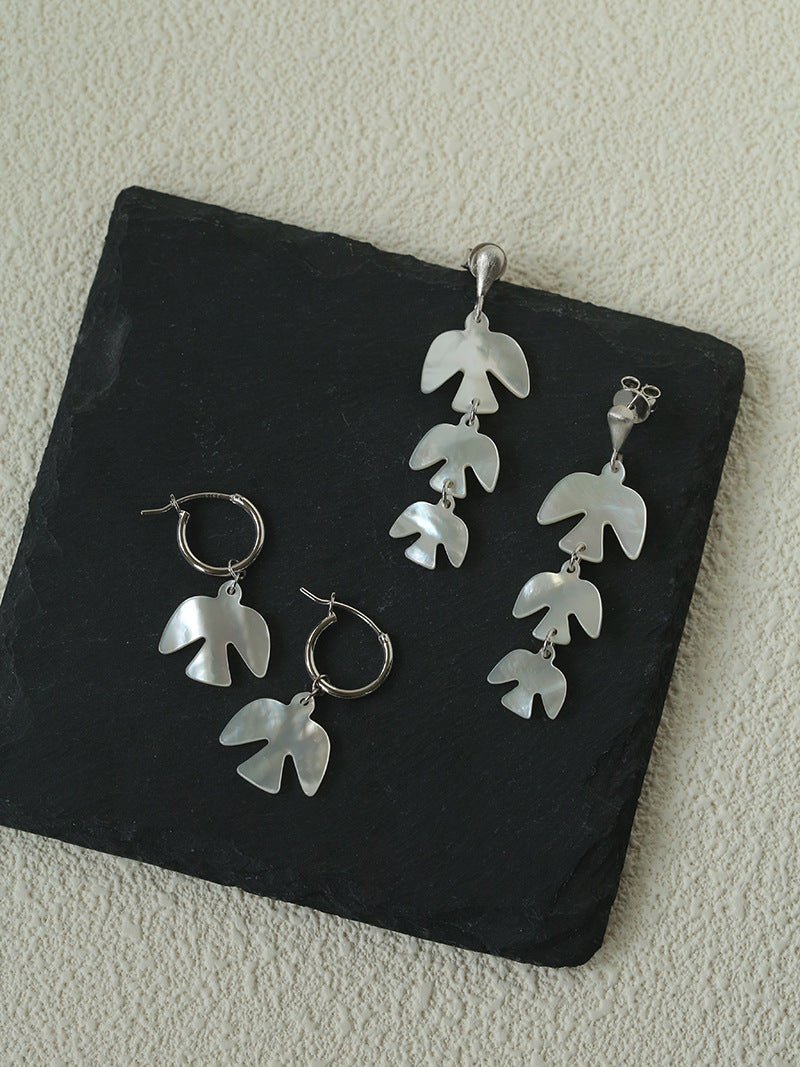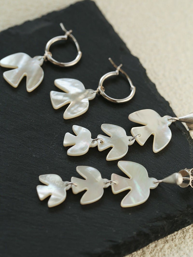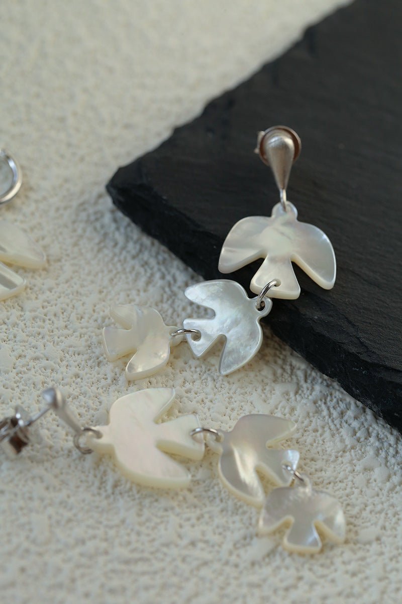 Crafted from natural mother-of-pearl, the birds shimmer with soft, natural luster. Paired with hypoallergenic 925 sterling silver, these earrings are lightweight, comfortable, and finely detailed.