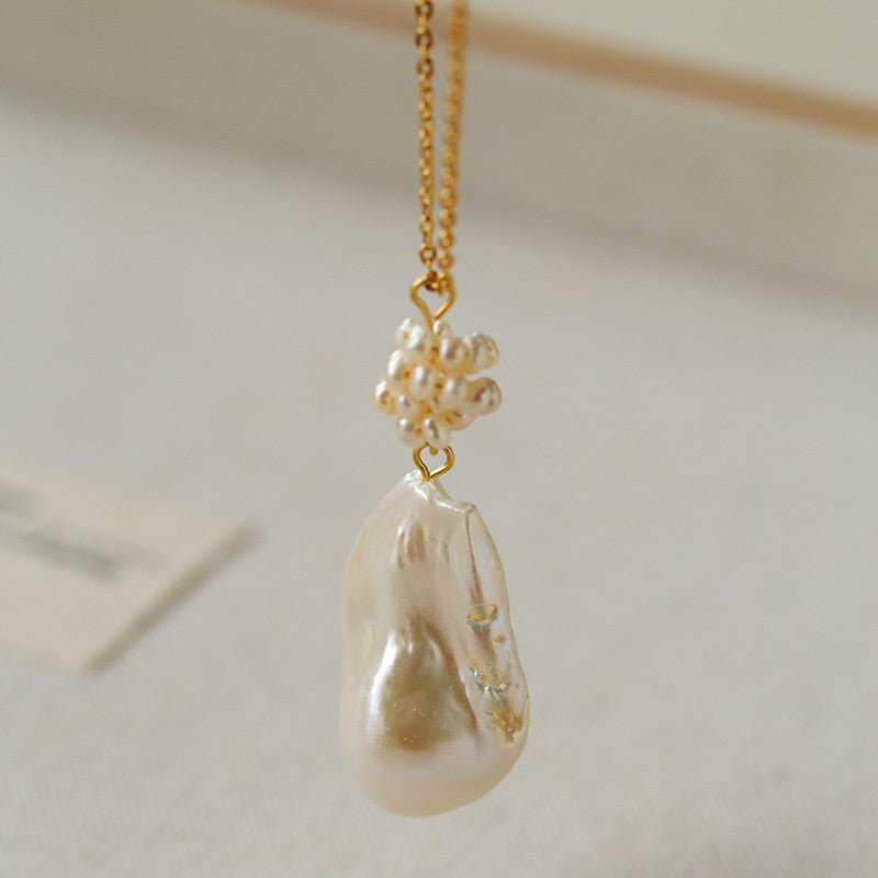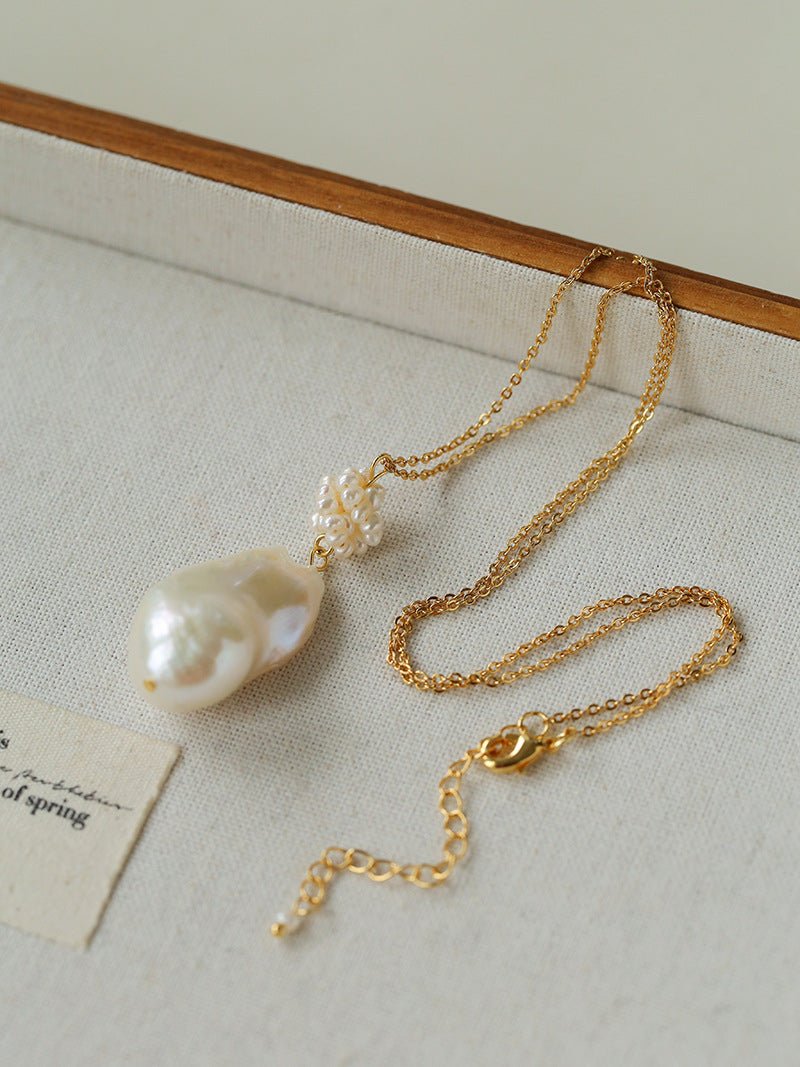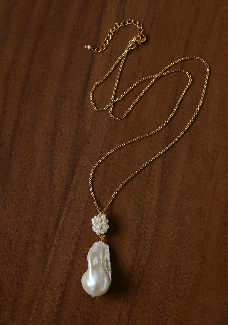 Baroque Pearl Floral Pendant Necklace | French Elegant Gold Chain