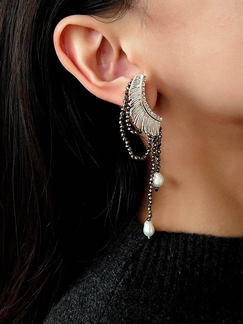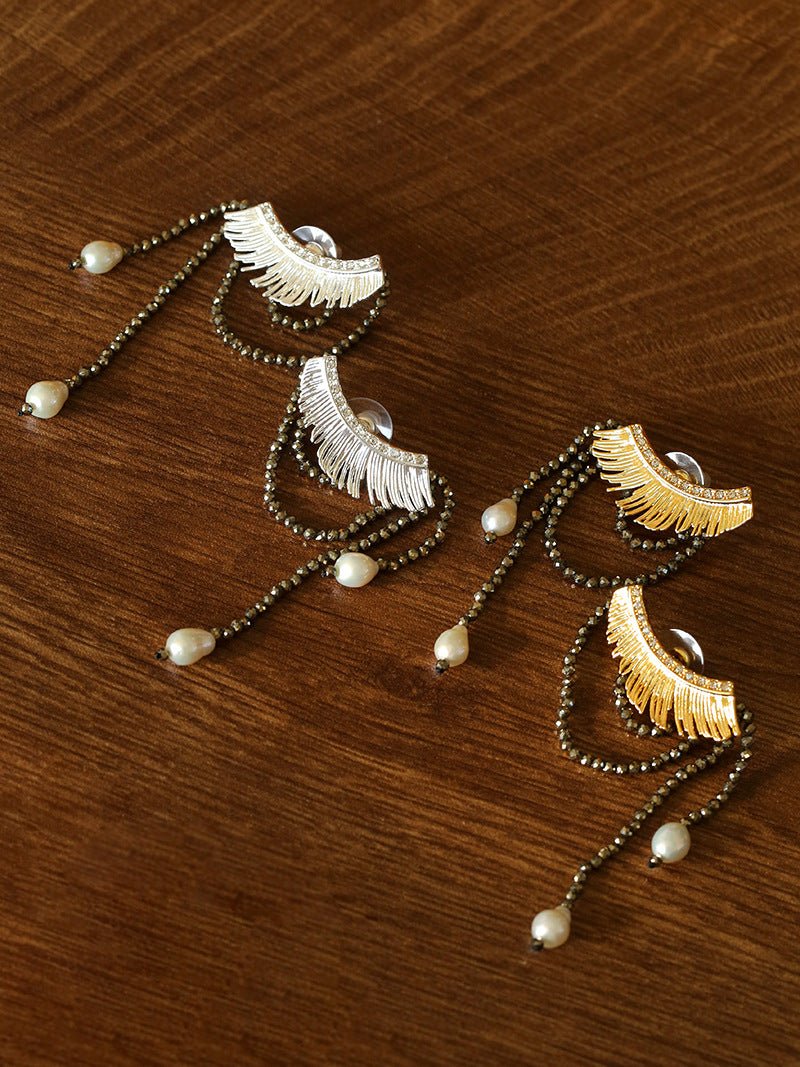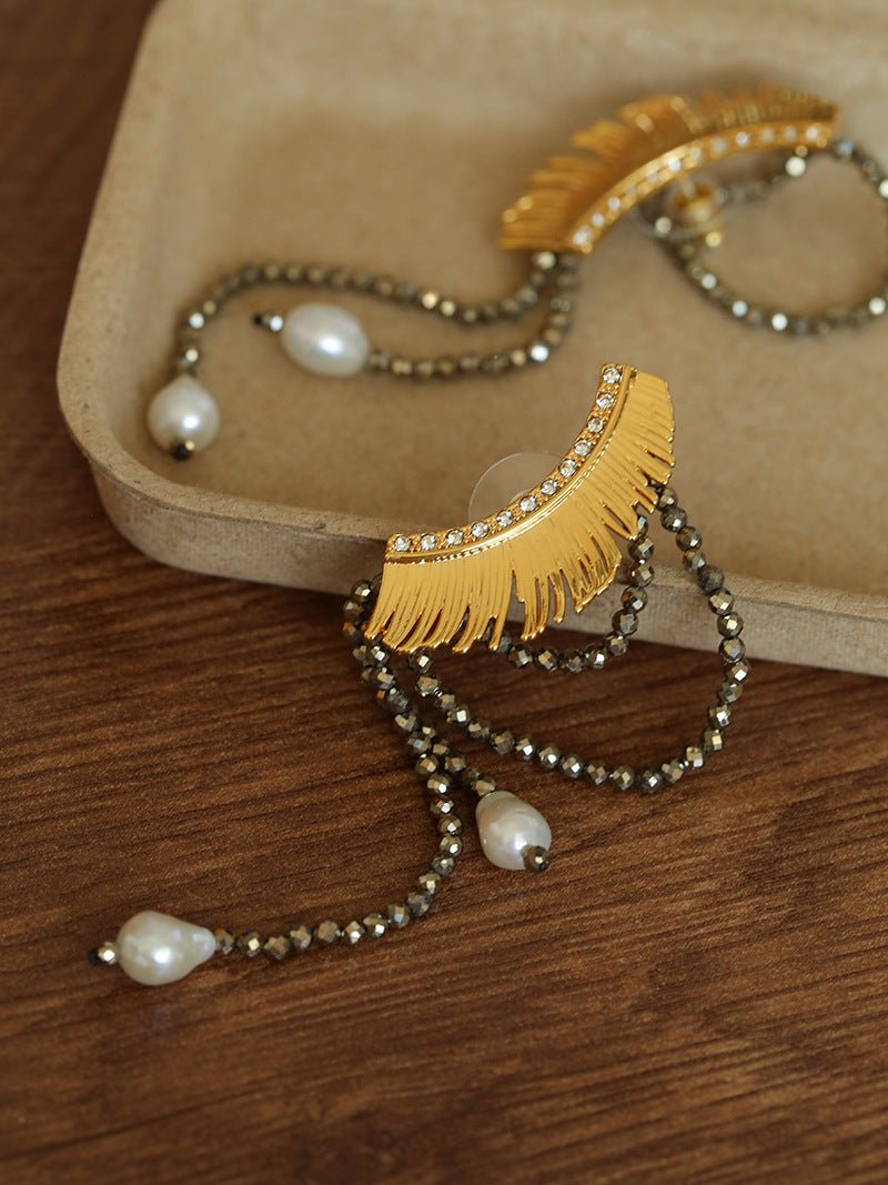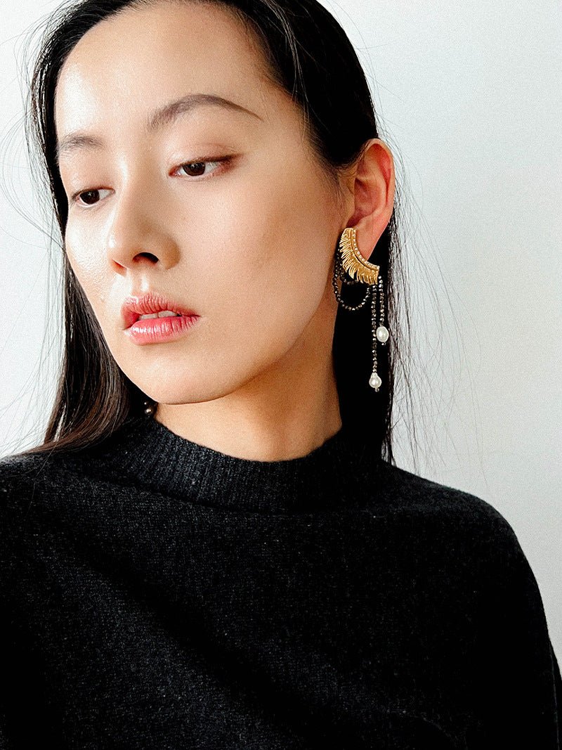 Delicately woven mini gold ore tassels sway gracefully with movement, adding texture and fluidity, complemented by freshwater pearl accents for a soft, elegant contrast. Thoughtfully designed, the earrings can be worn horizontally or vertically, offering versatile styling options to suit different moods and outfits.