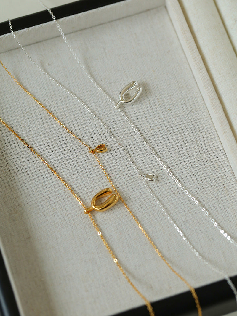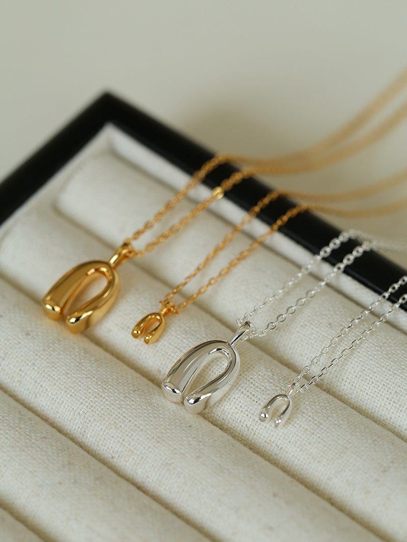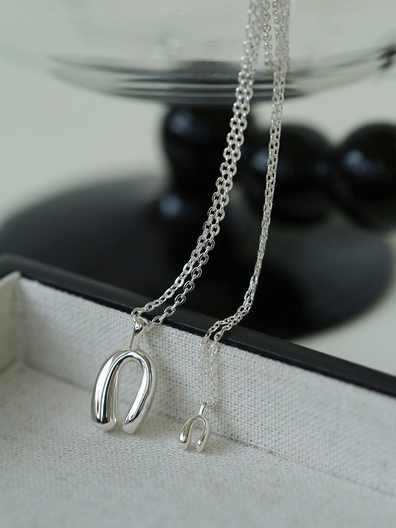 Minimalist Geometric Horseshoe Pendant Chain Necklace