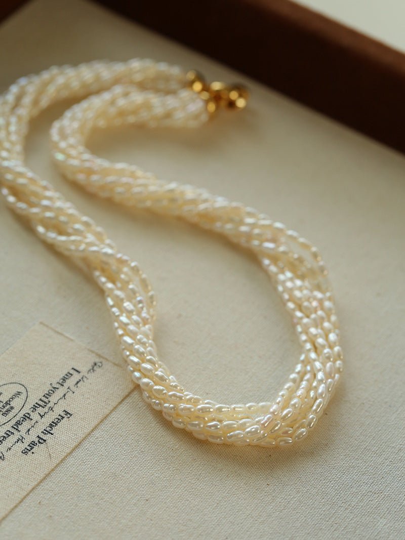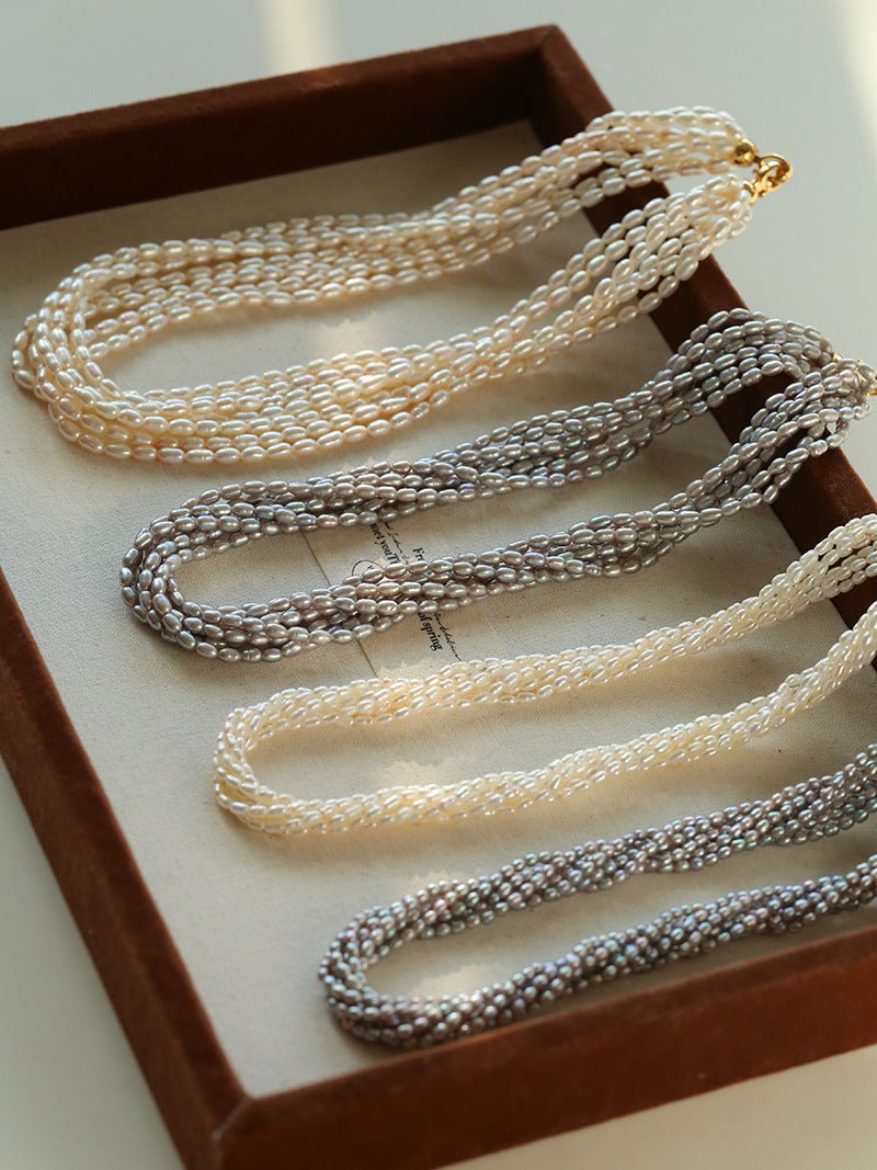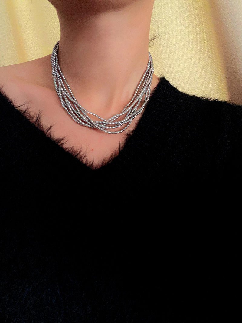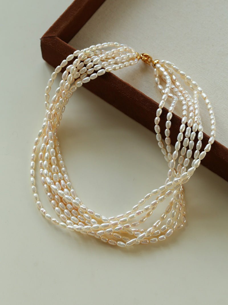 Hepburn Style Multi-Layer Rice Pearl Wrap Necklace