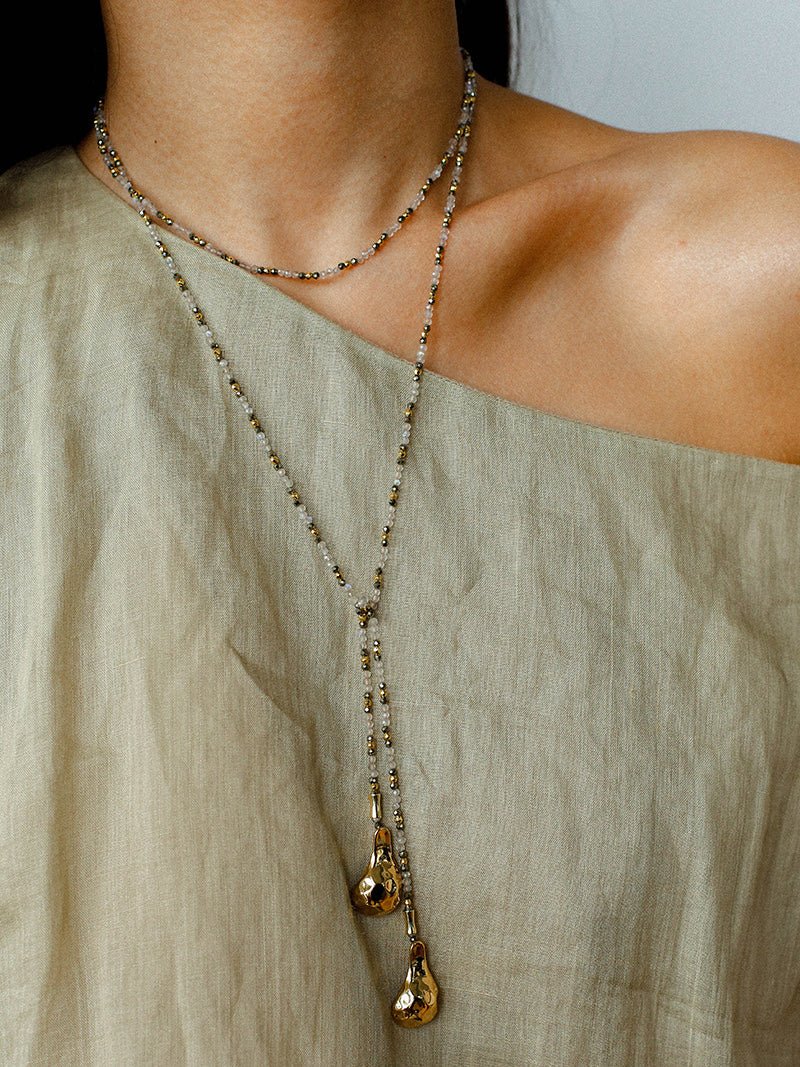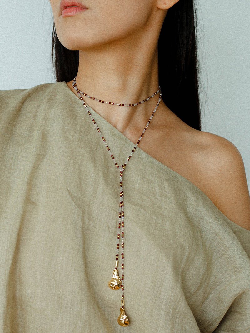 Elegant with a hidden edge — the Dusk Spoon necklace in Flash Stone & Garnet captures a vintage soul with a modern twist.