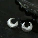 Matte Sterling Silver Series Frosted Moon Bud Simple Stud Earrings