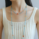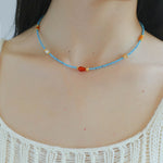 Blue Turquoise Red Onyx Multi-element Beaded Necklace - floysun