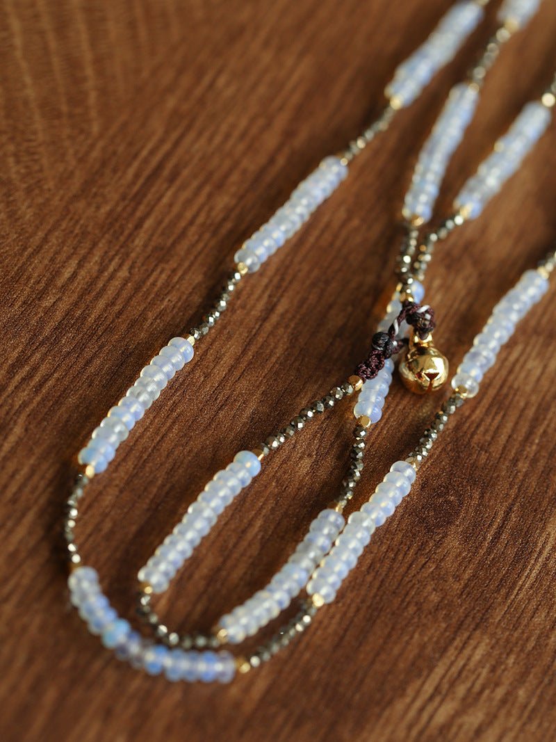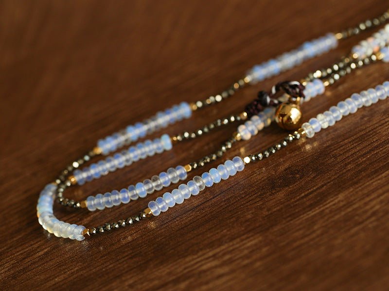 Mystical, playful, and effortlessly stylish — this opal and gold ore beaded necklace brings together the ethereal shimmer of opal and the warm luster of gold ore for a striking visual contrast. The opal stones catch the light with a subtle blue glow, while the gold ore adds depth and vintage-inspired richness.