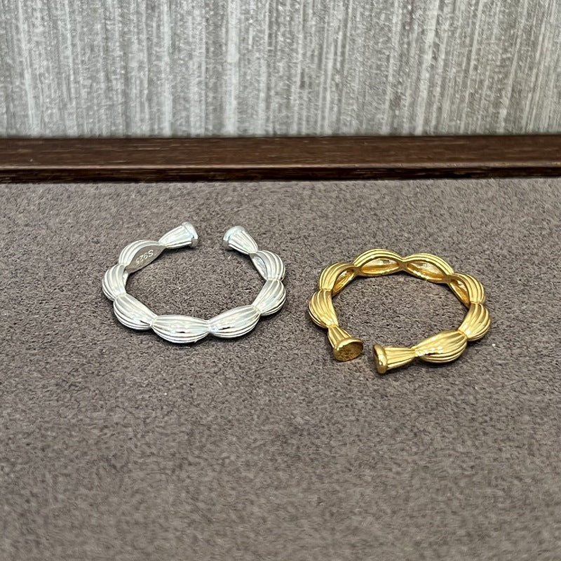 Inspired by the blooming Camellia, this ring is crafted in 925 sterling silver with layered petals forming a delicate, lifelike blossom. The open design allows for adjustable wear, capturing the feeling of a gentle breeze caressing the flower.