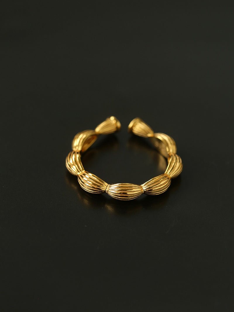 Paired with a minimalist seed motif ring, the set symbolizes the birth and growth of life, blending subtle storytelling with refined elegance. Perfect worn solo for understated charm or stacked for added dimension, transforming your fingertips into a miniature botanical garden.