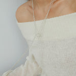 Its versatile silver hue complements any outfit — from camisoles and sweaters to crisp shirts — balancing femininity and minimal edge with ease.
