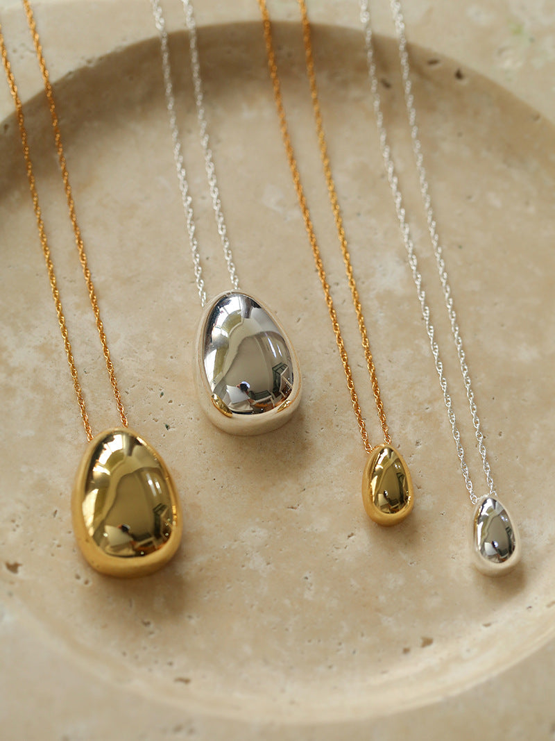 Introducing the Exquisite Egg Necklace with Unmatched Beauty and Simplicity! The perfect combination of texture, radian, and luster create an effortlessly elegant piece that captures attention. Its craftsmanship is evident in the attention to detail and fine polishing, reflecting dedication and skill. Embrace the beauty and sophistication this necklace brings to your style.