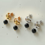 Black Agate Drop Huggie Earrings - floysun
