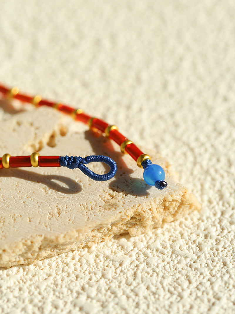 The red agate symbolizes vitality and good fortune, while the gold elements elevate sophistication, and the blue beads add a touch of freshness. Perfect for single wear or layered styling, this bracelet is a meaningful New Year gift for friends, loved ones, or yourself.