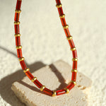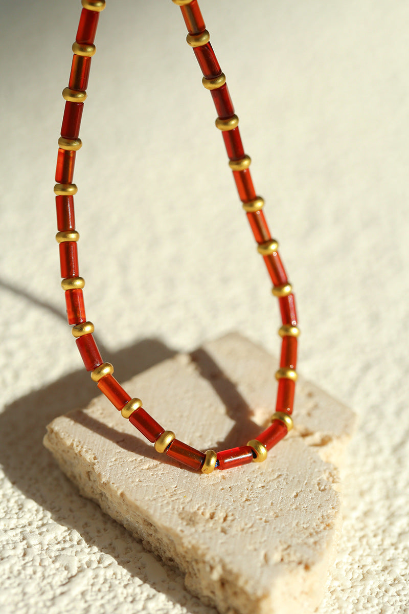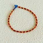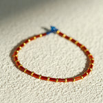 Celebrate the New Year with this elegant yet playful red agate bracelet. Featuring vivid red agate tube beads accented with gold-tone spacers and fresh blue beads, this design blends festive energy, refined luxury, and subtle charm.