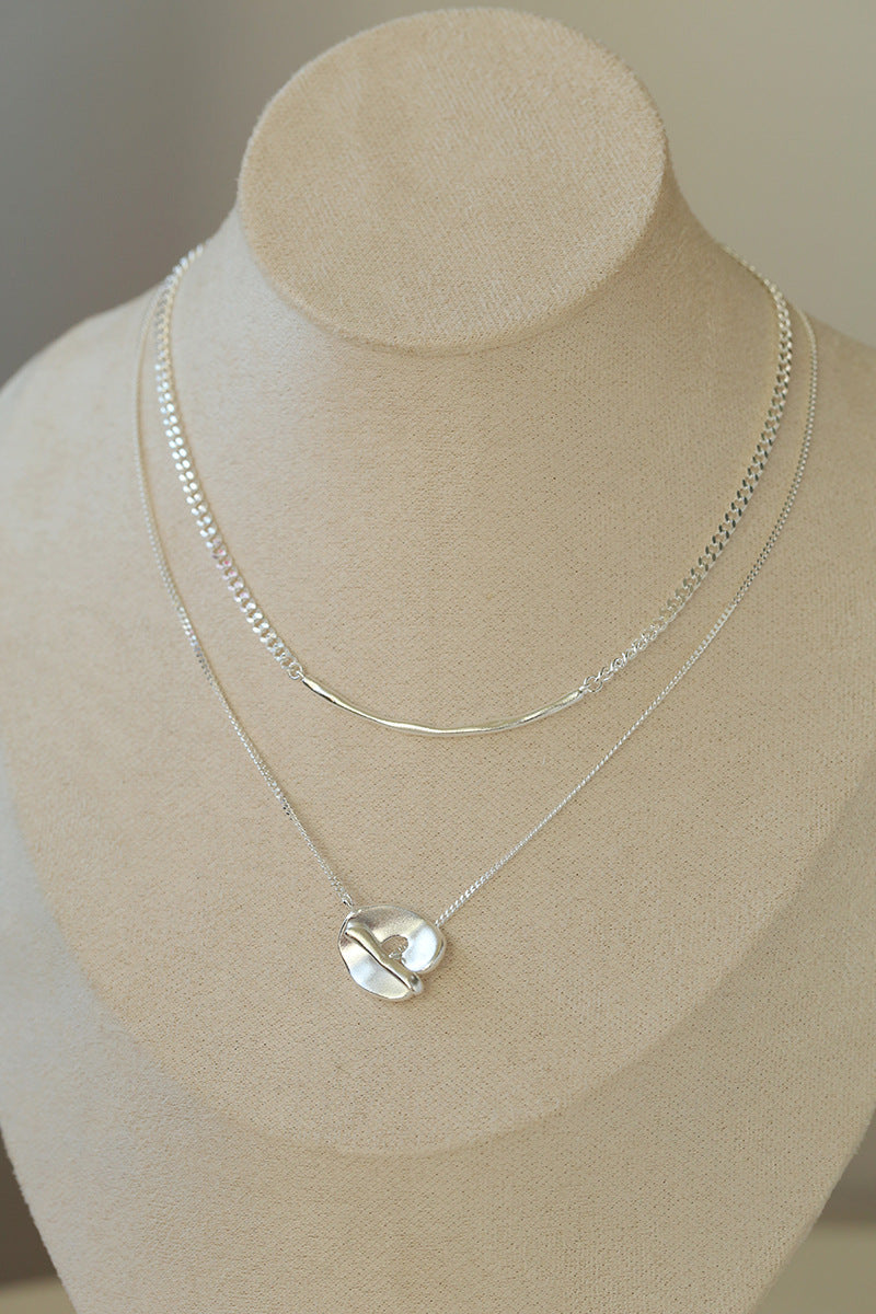 Geometric Layered Necklace with Sculptural Pendant – Sterling Silver - floysun