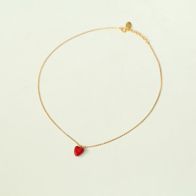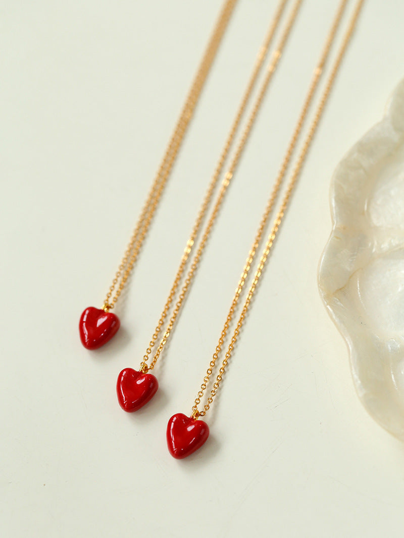 925 Silver Red Enamel Love Pendant Necklace - floysun