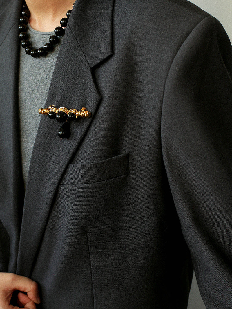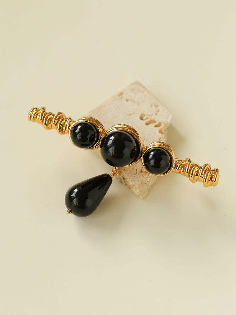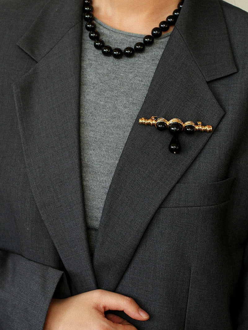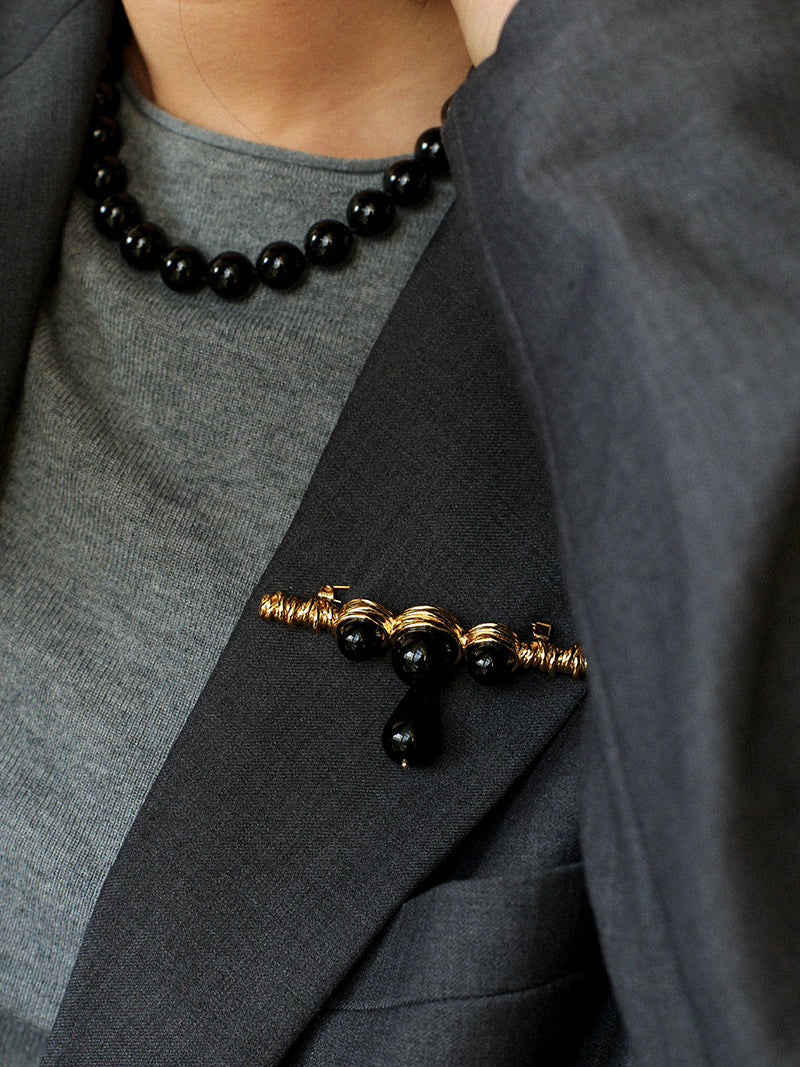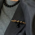 A teardrop-shaped black onyx pendant delicately suspends below, adding gentle movement that softens the design and brings it to life with every step. Minimal yet impactful, this brooch instantly elevates coats, blazers, knitwear, or shirts — adding depth and polish without overwhelming your look.