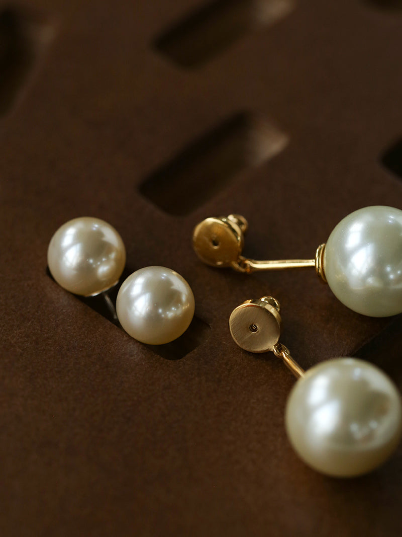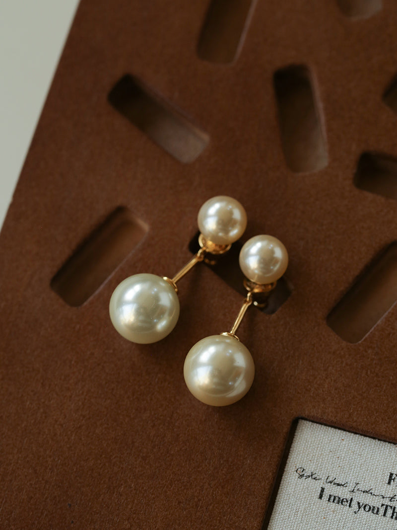 Classic Double Pearl Drop Stud Earrings