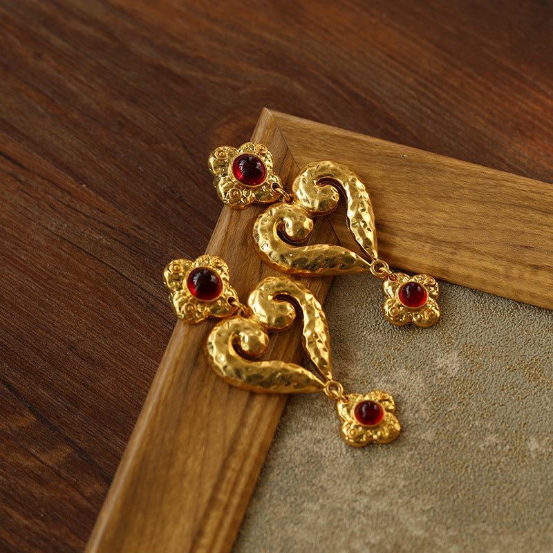 Antique Geometric Heart Red Crystals Dangle Earrings - floysun
