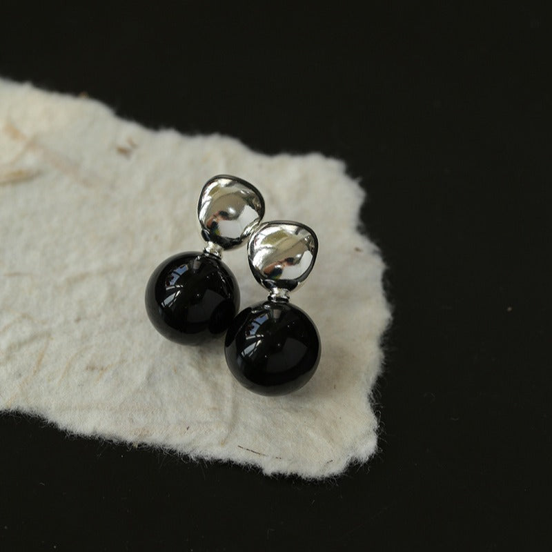 These vintage-inspired earrings feature striking black onyx and tiger's eye, with the black onyx exuding elegance and sophistication, while the tiger's eye adds a touch of natural beauty with its golden hue and captivating cat's eye. Suspended from delicate sterling silver posts, these ball drop earrings have a timeless appeal that easily elevates any outfit.
