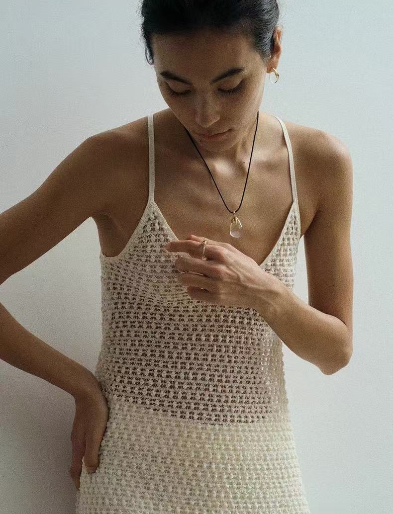 Flowing White Crystal Necklace Adjustable Wax Cord Design