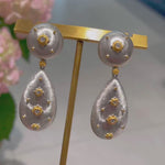 Luxurious Brushed Two-Tone Eight-Point Star Double Drop Earrings - Silver
