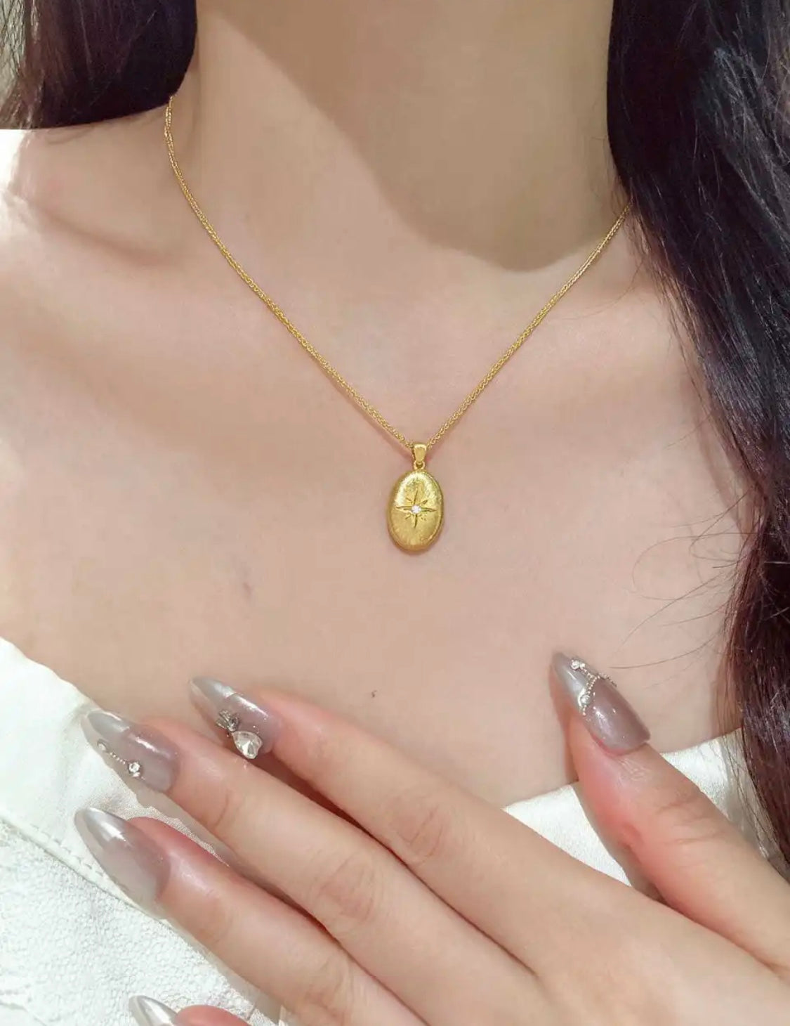 A masterpiece of Italian-inspired elegance. Crafted in 925 sterling silver with a hand-brushed gold-plated finish, every texture reflects the warmth of artisan craftsmanship. One side features a radiant eight-pointed star motif, full of regal charm; the other showcases a two-tone four-leaf clover—two looks in one piece. Available in gold or silver, equally refined and versatile for both workdays and special occasions.