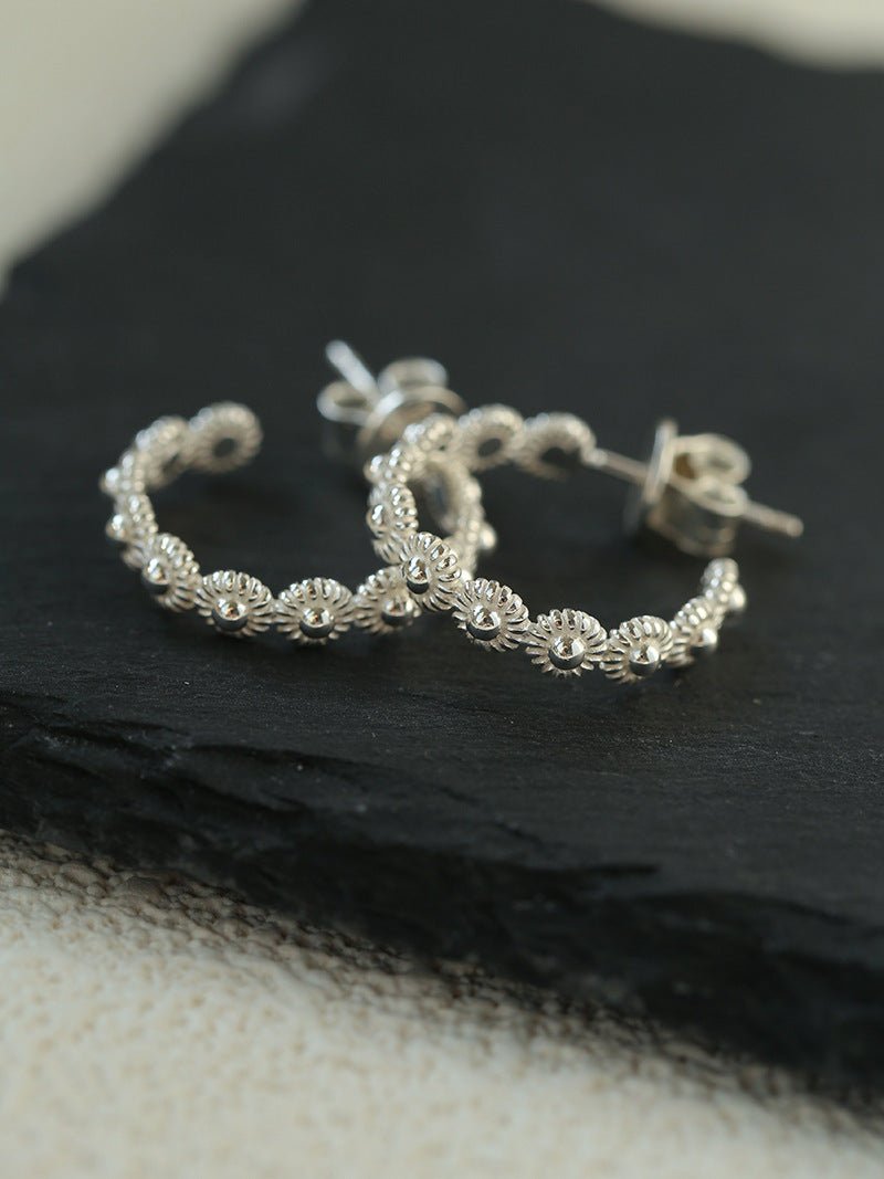 Sterling Silver Floral Hoop C - shaped Earrings - floysun