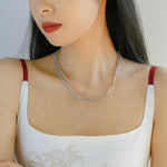 The necklace has multiple layers of delicate chains, each decorated with mini gray onyx beads and secured with a 925 silver hook clasp. It is both functional and elegant. The sterling silver material pairs perfectly with the gray onyx beads to create a cohesive and sophisticated look.