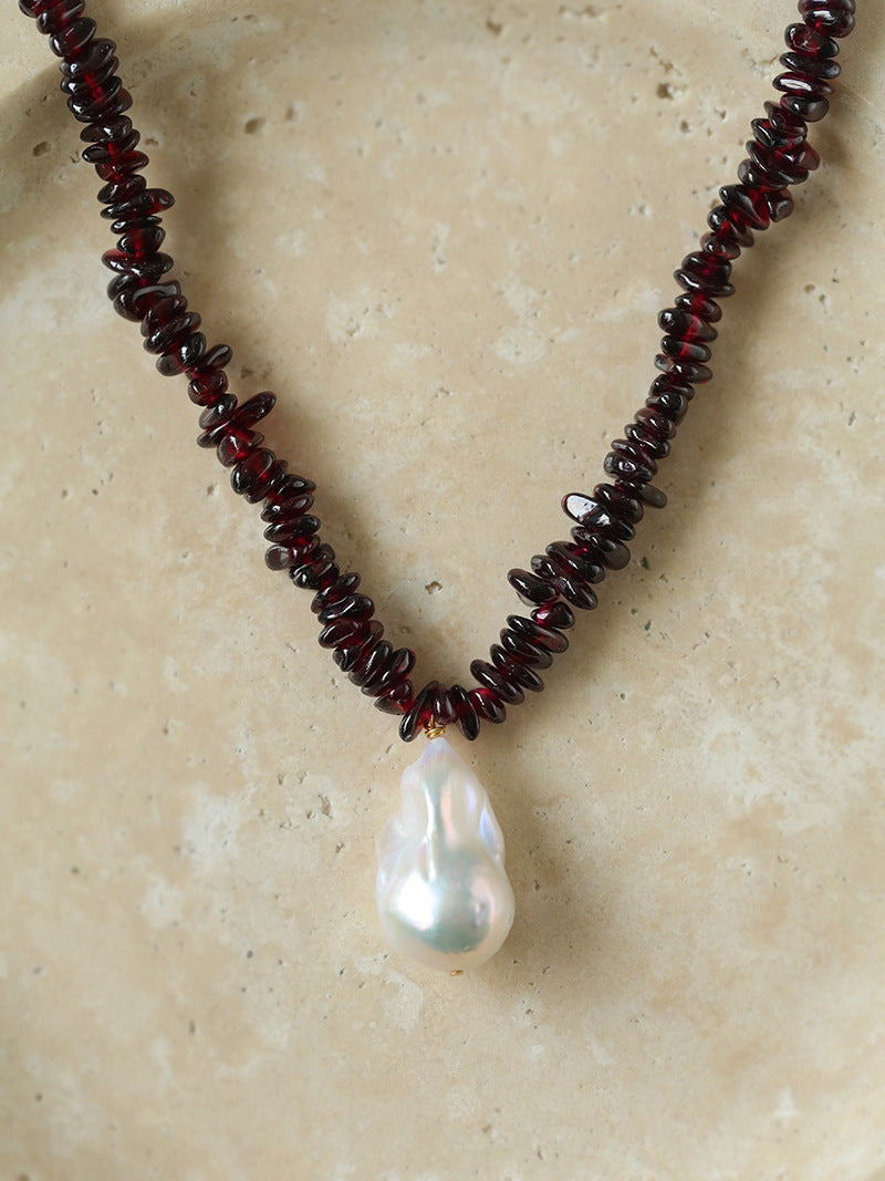 Golden Radiance Baroque Pearl and Garnet Necklace - floysun