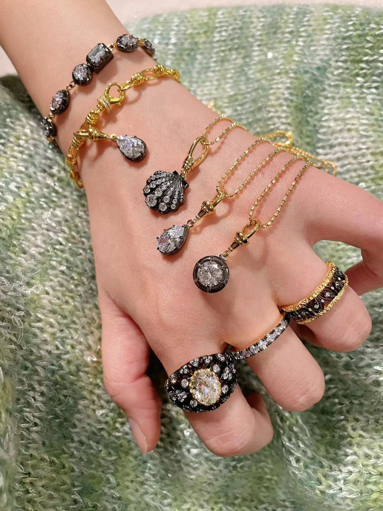 Crafted in solid sterling silver thickly coated with real gold and set with lab-grown gemstones, our fine jewelry balances timeless quality with contemporary artistry. Each design is uniquely created — understated, refined, and never ordinary.