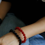Indulge in our "Gemstone Bracelet 10mm Beaded: Black Onyx, Red Onyx, and Yellow Jade" - a luxurious and versatile piece crafted with high-quality materials and showcasing the natural beauty of gemstones. Elevate your style with the bold and warm tones of black onyx, red onyx, and yellow jade.