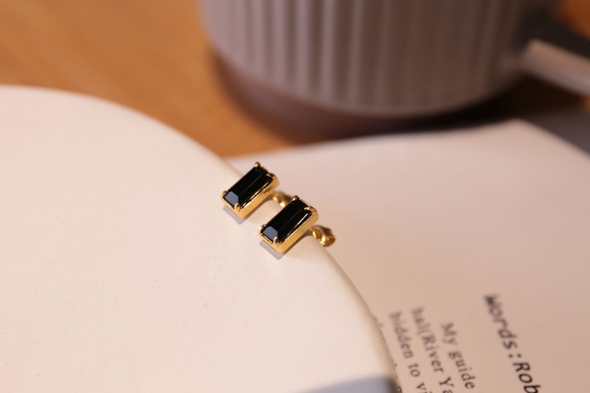 Featuring black zircon stones, these earrings offer a deep, glossy finish that reflects light subtly, creating a sleek and sophisticated look. Crafted from 925 sterling silver with 18K gold plating, they are lightweight, comfortable, and suitable for sensitive ears. The minimalist design makes them highly versatile—perfect for daily wear, work, or layering with other earrings.