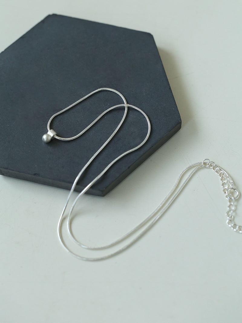 Minimalist Frosted Single Silver Ball Pendant Necklace